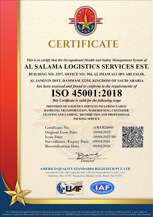 At Al Saal Logistics, our certifications are a mark of excellence. They demonstrate our commitment to international quality, safety, and reliability in logistics operations. Each certification stands as proof of our dedication to delivering seamless, secure, and efficient solutions for our clients worldwide. Below are some of the key certifications that highlight our dedication to quality and professionalism.